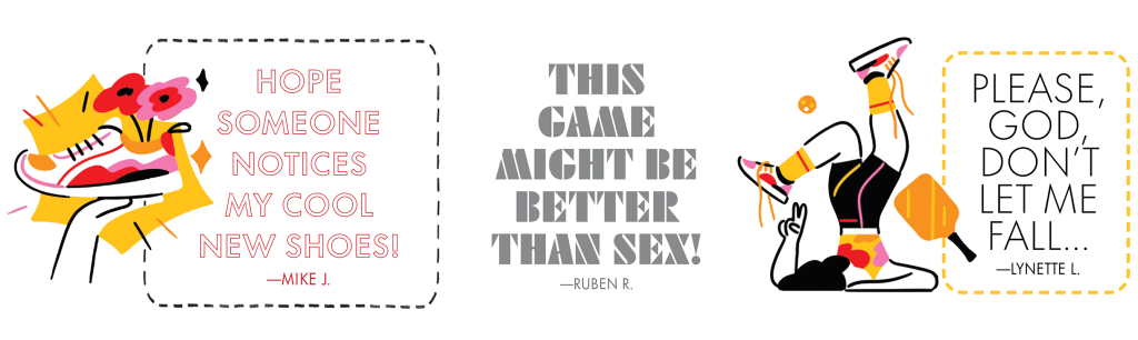 A: Whether you’re a pickleball novice or a seasoned player, the thoughts running through your head right before you hit the court can set the tone for an entire game. From personal pep talks to hilarious musings, here are some of the most inspired ways you answered our question.