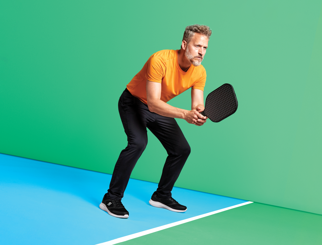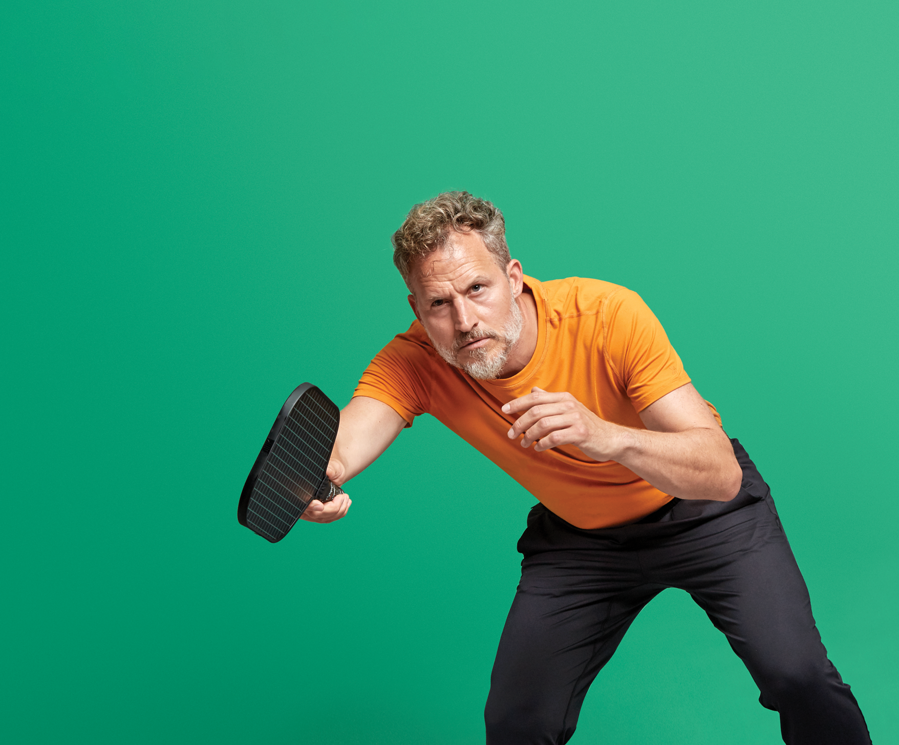 Read on for Haskin’s strategies for keeping opponents on their toes (demonstrated by pickleball player Bradley Carney).