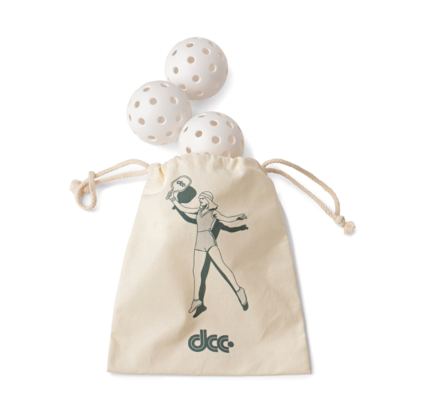 Durable and designed for outdoor play, plus a graphic reusable tote bag to keep the trio together. DCC White Pickleball Set, $10; discocountryclub.com