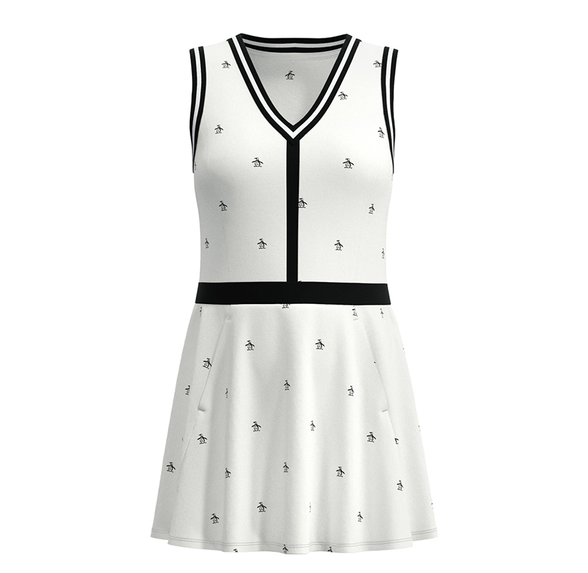 A hint of stretch means easy movement on the court, plus pockets and moisture-wicking fabric. Original Penguin Allover Pete V-neck Dress, $120; originalpenguin.com