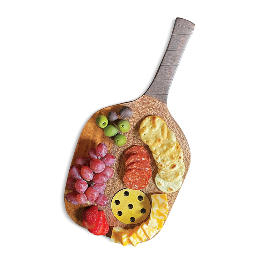 Postgame cheese and goodies taste way better when served on a handmade paddle-shaped wood cutting board. Pickleballkitchen Solid Hardwood Pickleball Charcuterie Board, from $145; etsy.com