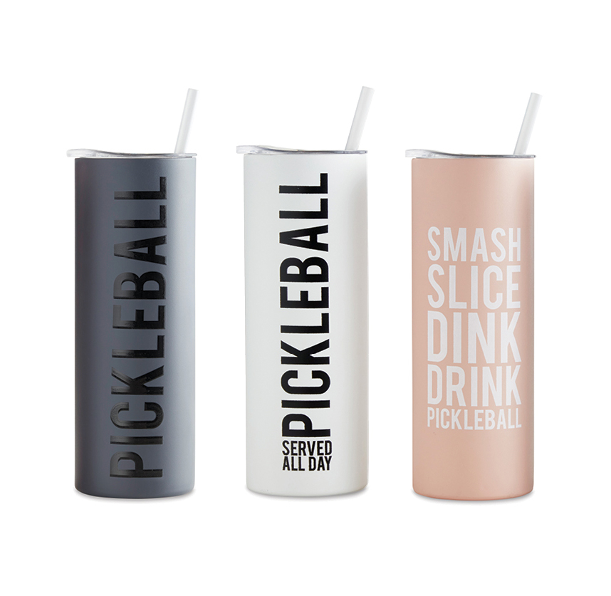 Travel tumbler holds hot or cold drinks for no-worry hydration or caffeination when on the tourney circuit. Santa Barbara Design Studio Skinny Tumbler, $25 each; sb-designstudio.com