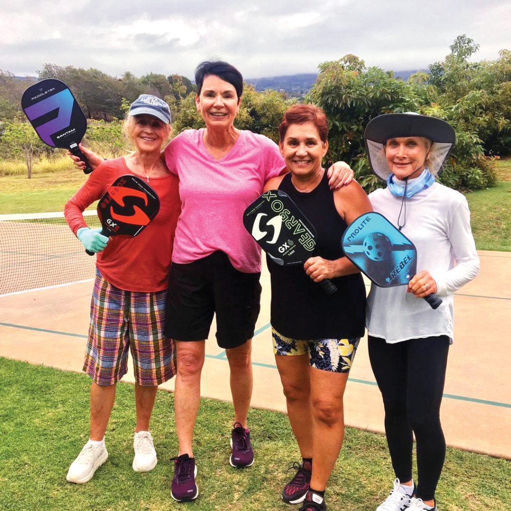 C.J., Lisa, Momi and Sherri are new PB addicts and are modeling their brand new paddles. #pickleball #maui #paddlesales