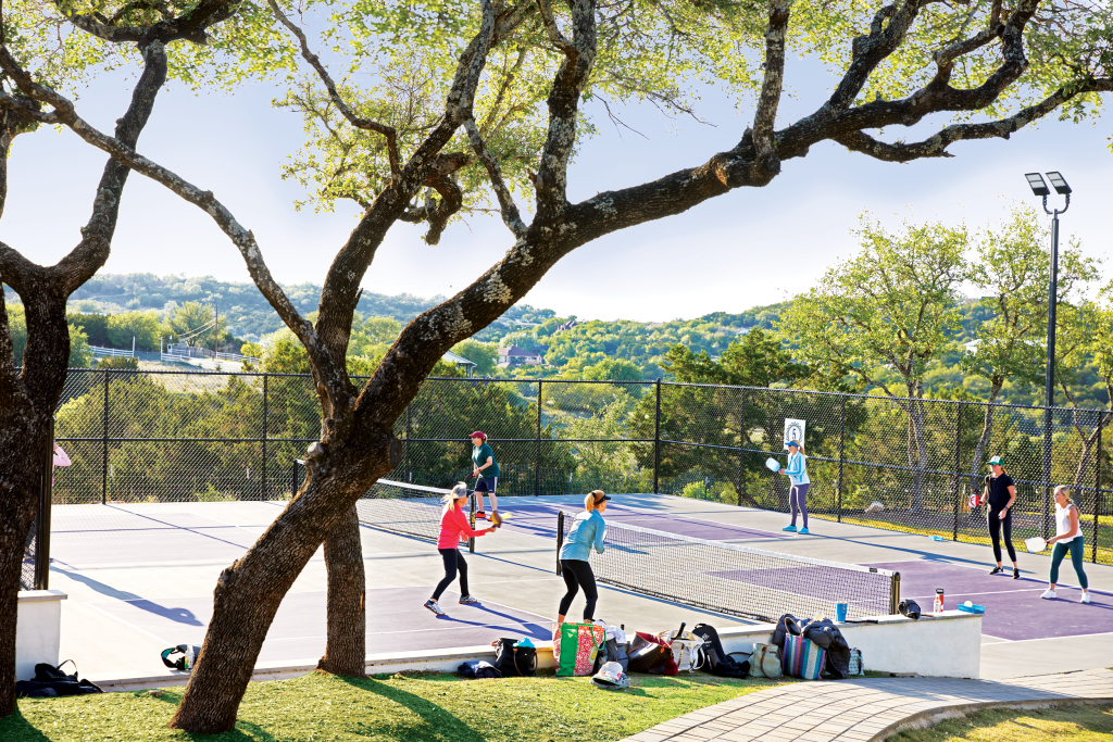 IN AUSTIN AND the surrounding Texas Hill Country, pickleball is having a moment. The sport has been integrated into multiple facets of community life, and getting a game is easy as pie: You can play at resorts, restaurants, breweries, and wineries, and there will be even more options when Austin Pickle Ranch—the new home of the Pickleball Hall of Fame—opens later this year, adding a whopping 33 courts.