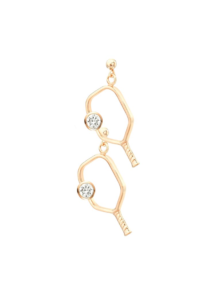 If you’ve been looking to add a little sparkle to your game—or give a gift to your favorite doubles partner—these 14K rose gold–plated paddle earrings have you covered. Each one features a faceted lab-created birthstone “pickleball” of your choice. They also come in sterling silver and yellow gold–plated versions. Pickleball Dangle Post Earrings with Birthstone, $129; crosscourtjewelry.com
