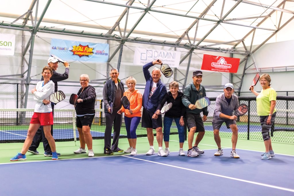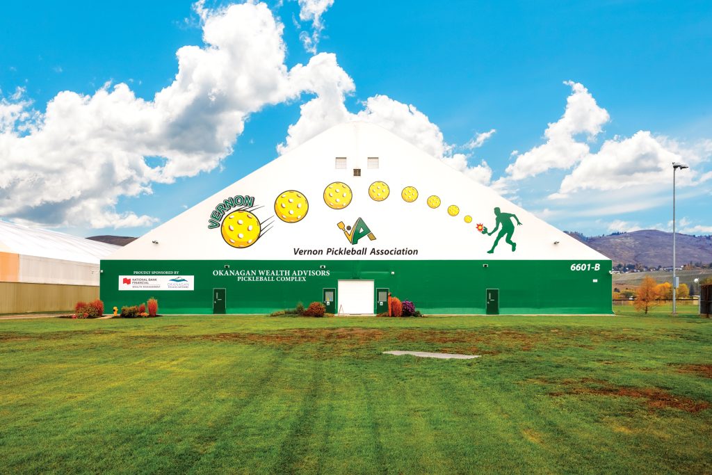 NEVER UNDERESTIMATE the power of seniors!” Don Friesen says. “Seniors have the experience, the knowledge, and the wisdom.” It’s sound advice in general, but in this case the 69-year-old retiree is referring to his fellow Vernon Pickleball Association members in British Columbia’s picturesque Okanagan Valley. And what their experience, knowledge, and wisdom brought to fruition is the club’s state-of-the-art pickleball facility: 12 enclosed courts with a three-quarter-acre footprint, thought to be the largest covered dedicated pickleball complex in Canada.