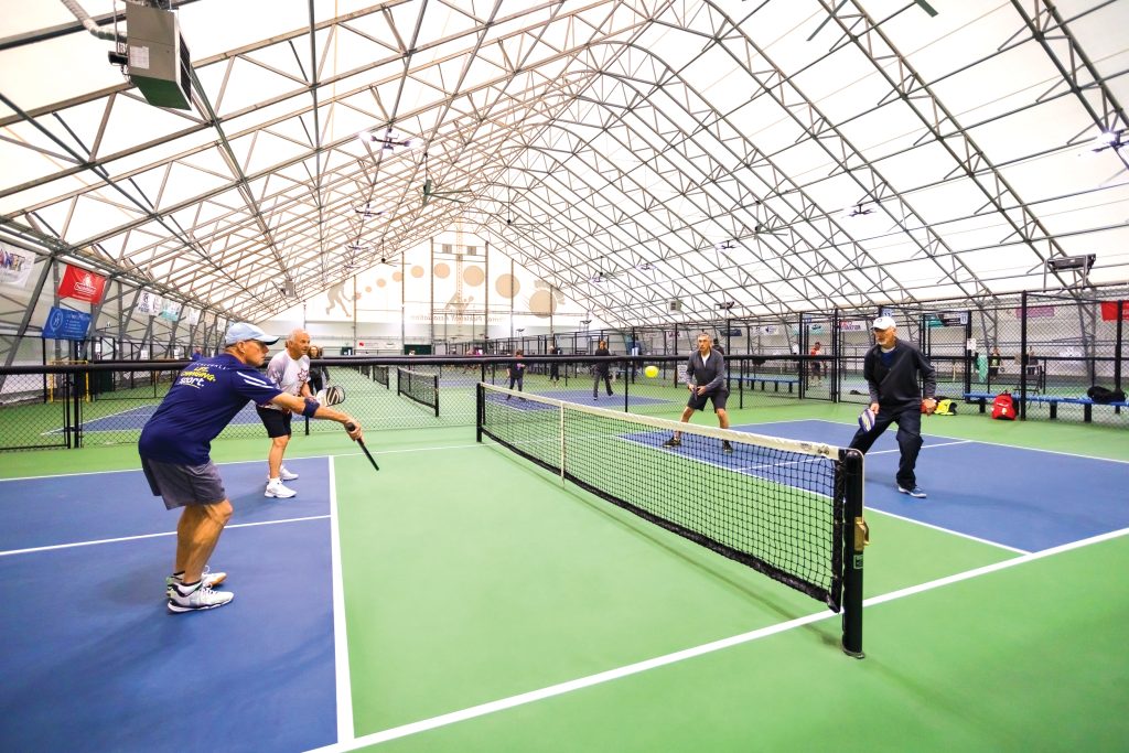 The second phase, which would enclose the massive court area, was on the horizon when Covid-19 hit: The city halted grants and loans, the gyms and rec centers the club usually rented indoor space from were no longer available, and it seemed indoor pickleball play might be delayed indefinitely. That’s when the club really rallied. “We picked up on the quote from Churchill that says ‘Never let a good crisis go to waste,’” Irving says. “So we came up with a plan to fund it [the enclosure] entirely from within the club.”