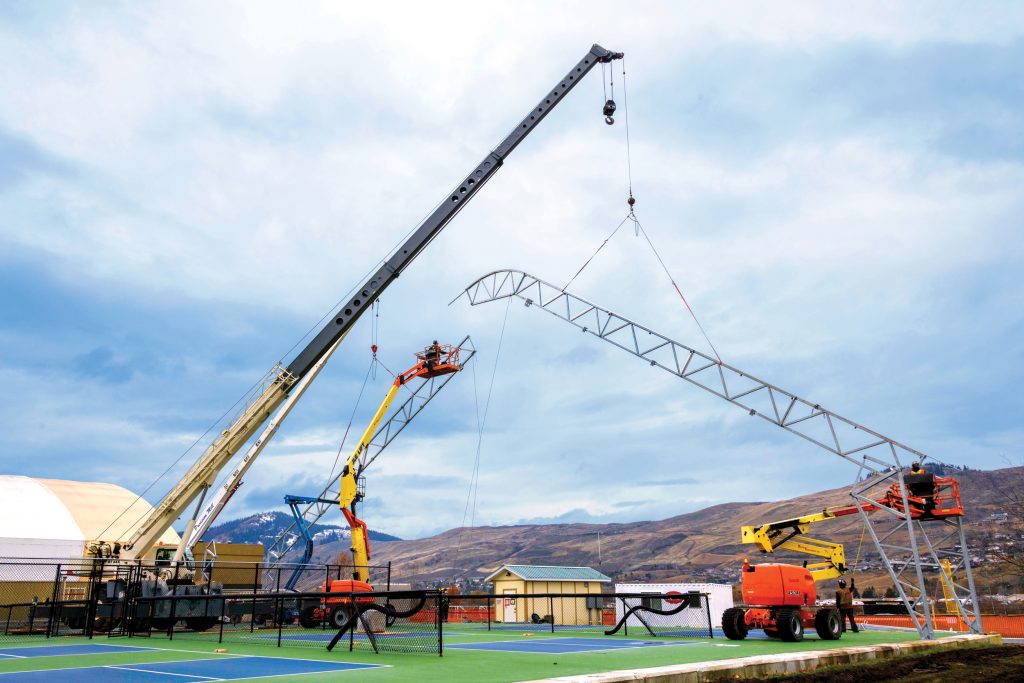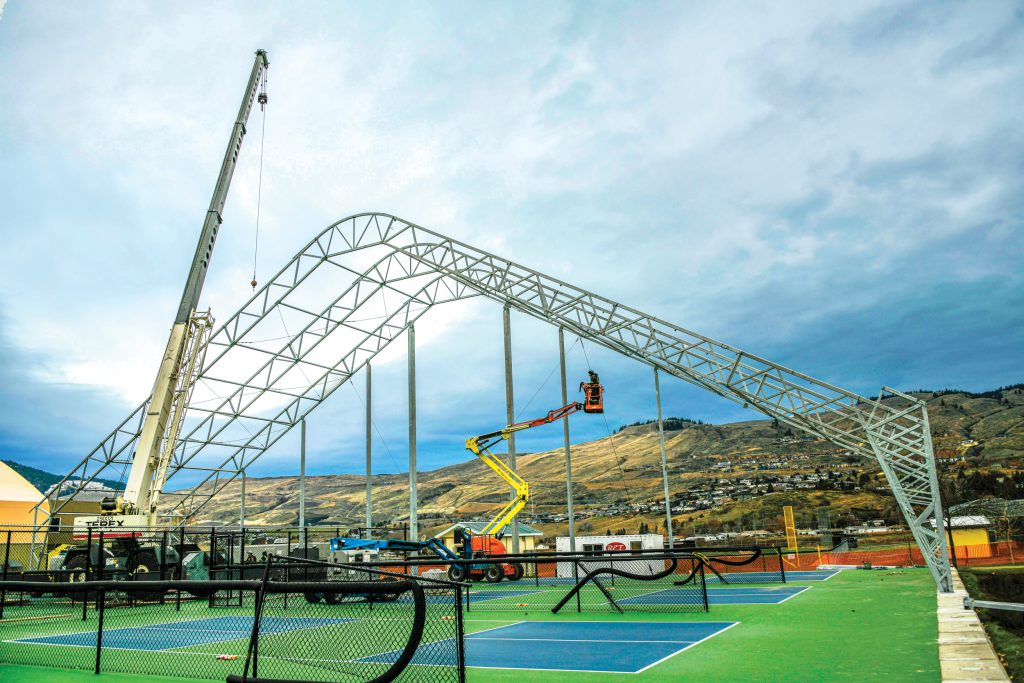 A pickleball complex comes to fruition, from the first steel truss to the final fabric covering.